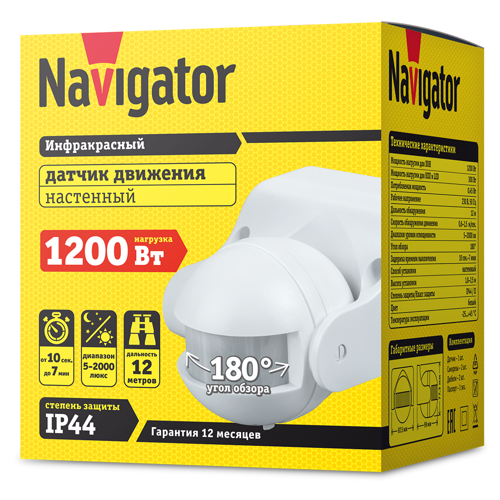- Дальность обнаружения, м IP44