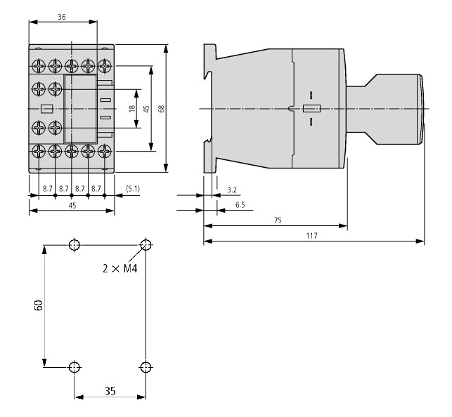 - Главные контакты 3 замыкающих контакта