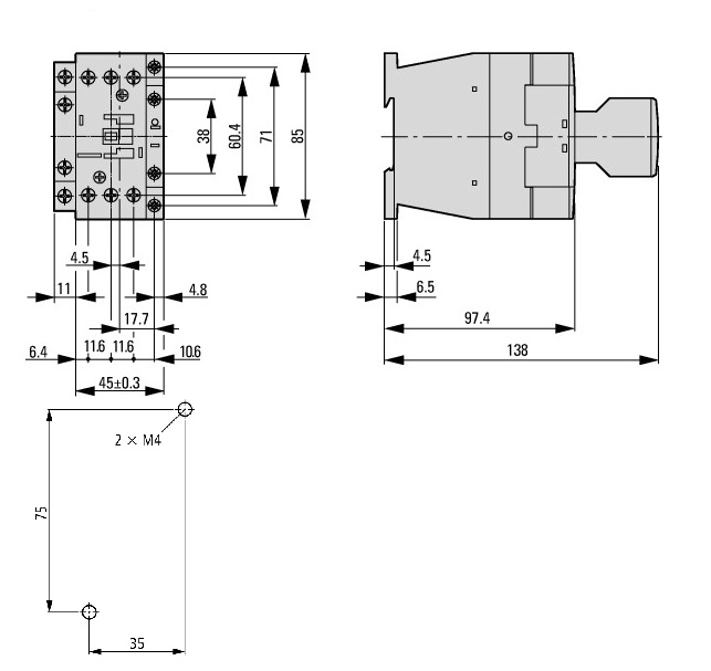 - Главные контакты 3 замыкающих контакта