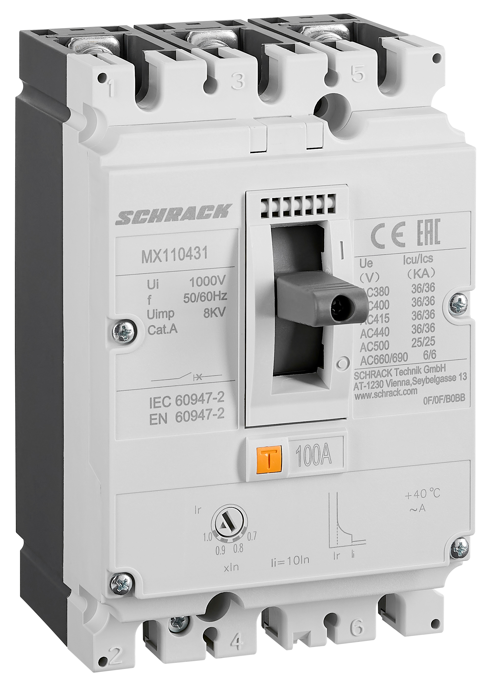 - AC 380/400/415V 36kA (Icu) / 36kA (Ics)