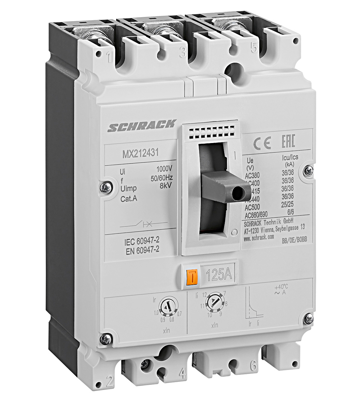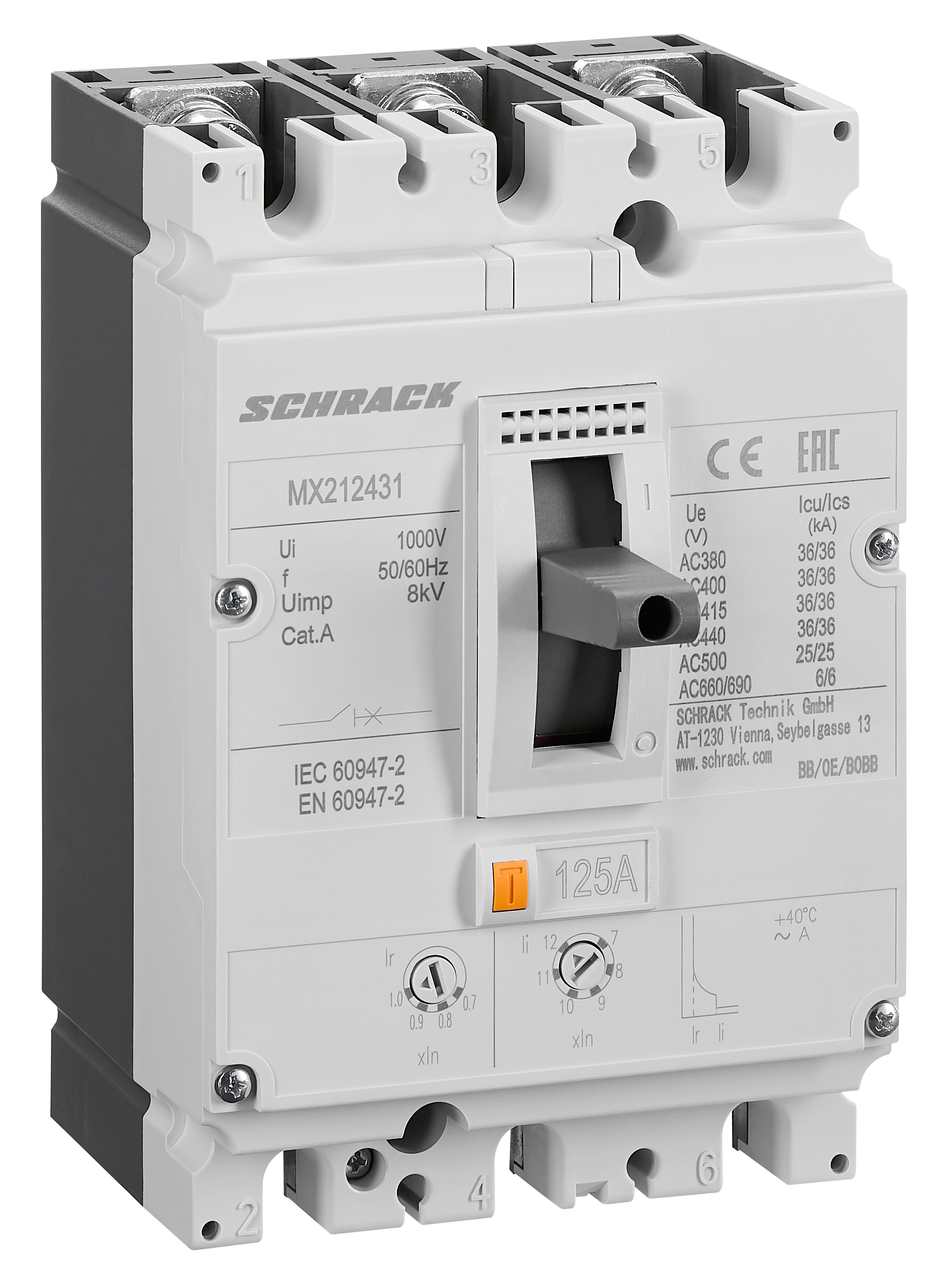 - AC 440V 36kA (Icu) / 36kA (Ics)
