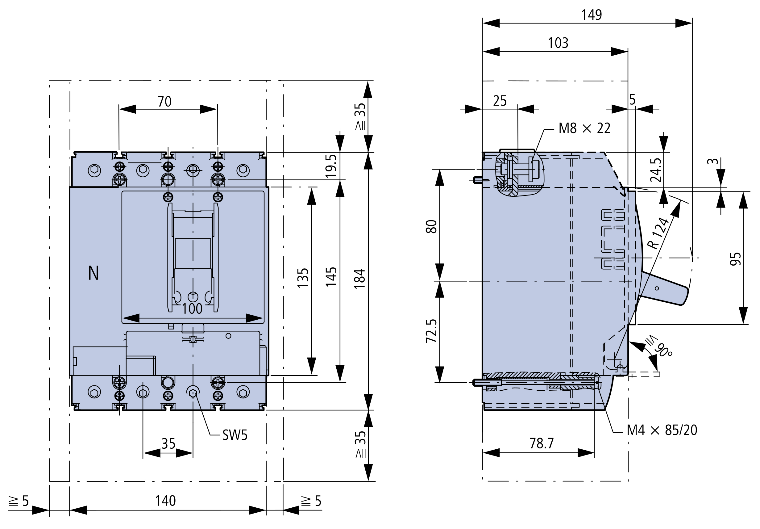 - Номинальный ток 100A
