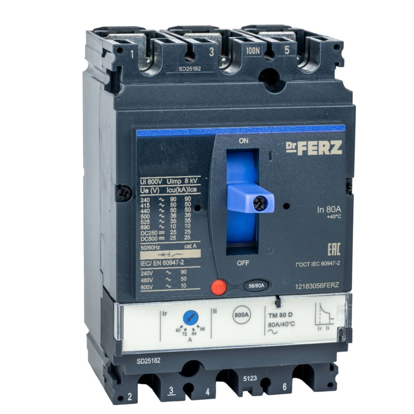 Авт. выкл. FERZ FPC-21- N- 100-TM-D/3P 80А Ir=0,7-1,0In, Ii=10In, 50кА MCCB с рег. термомаг. расцепителем