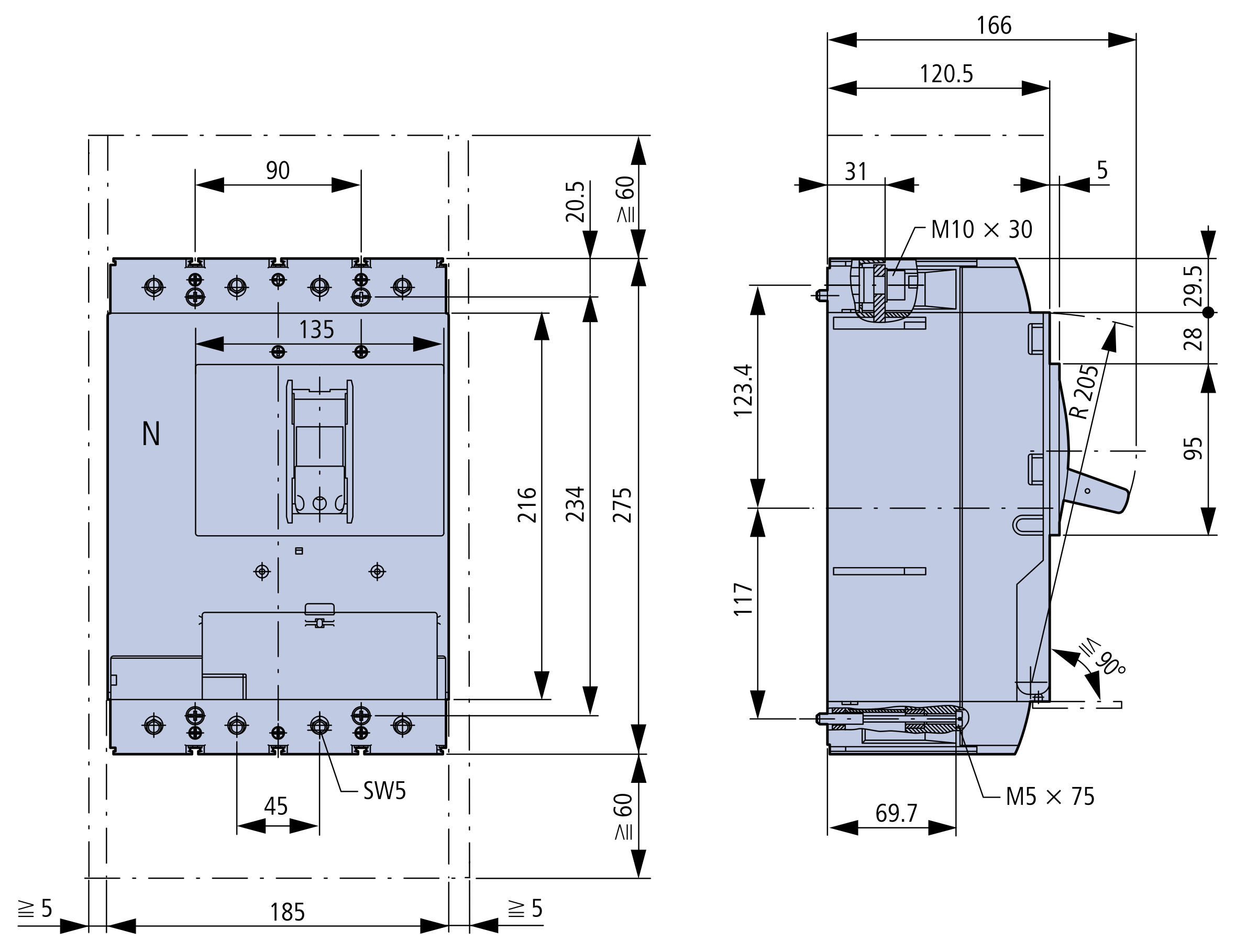 - Номинальный ток 630A