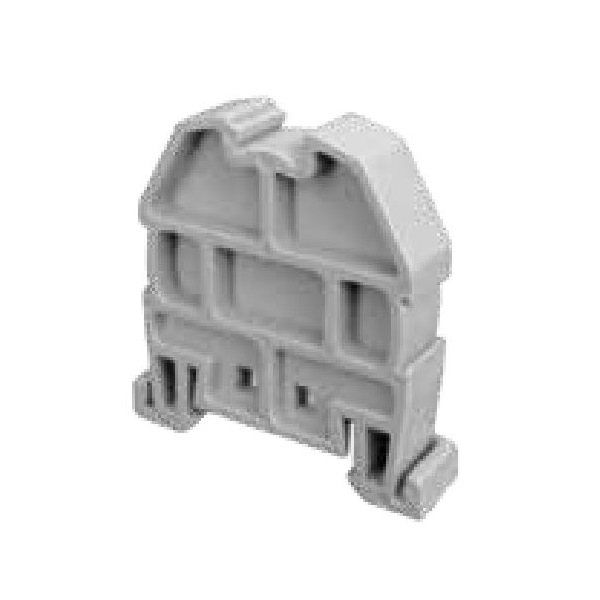 Пластиковый концевой стопор Onka. Стопоры устанавливаются с обеих концов набора клемм и служат для их фиксации на DIN-рейке.